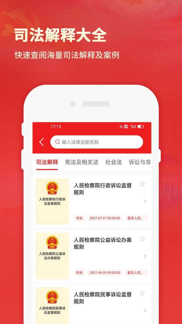 收录了1000多部中华人民共和国法律法规、2000多部法律法规及司法解释、16000多部地方性法律法规。软件特色:1. 法律法规详细分类,一键查找。包含*高法颁布的全部法律法规大全及司法解释,能够方便地查阅相关的法律法规数据库中司法解释及案例。2. 全文检索,标题与章节检索。提供收藏、书签等个性化功能,可以对法律常识内容进行保存。3. 快速索引定位。内置多种字体样式,您可以自由地更改文本的字体大小、字体颜色、背景颜色、行间距和页边距。更好的体验。阅读流畅中国法律汇编、法律全集使用方便。4. 升级功能后可一键复制相关条文、多个法条、文书,并将中国法律服务、案例、裁判文书发送给指定联系人适合法律专业者(律师、法律学者、法律工作者)以及法律从业者(法律专业学生、司法考试、公务员考试)快查法律法规数据库法律全集。法律大类一览:国际法、行政及行政诉讼、经济法、民法、刑法、民事诉讼法及仲裁、民事诉讼法及仲裁、商法、司法制度及法职、宪法、刑法、刑事诉讼、劳动法、民法典、婚姻法、治安管理处罚法等。司法要点分类:婚姻纠纷:离婚,婚前协议,财产约定,子女抚养;劳动纠纷:试用期争议,劳务合同,工伤鉴定等;民事纠纷:财务纠纷、遗产继承纠纷、债务纠纷;交通事故:责任认定,伤残等级,精神损害赔偿;房产纠纷:产权纠纷,房屋买卖,房产,析产;债权纠纷:借贷,欠款,借条,抵押,担保;合同纠纷:买卖合同,违约,合同公证等;侵权纠纷:侵权人过错,重大过失,损害赔偿,国家反诈中心。汇总整理离婚咨询、劳动纠纷、交通事故、房屋纠纷、消费维权、借贷纠纷、公司经营、合同纠纷、知识产权、医疗纠纷、遗产继承等相关常见法律问题。中国法律汇编目录:宪法类:宪法人民政府组织法人民代表大会选举法人民法院组织法人民检察院组织法人大组织法国务院组织法人大议事规则人民代表大会代表法国家赔偿法法官法检察官法立法民法商法类:民法典婚姻法商标法专利法继承法民法通则外资企业法著作权法收养法海商法反不正当竞争法消费者权益保护法公司法商业银行法票据法担保法保险法拍卖法合伙企业法证券法合同法个人独资企业法招标投标法信托法企业破产法物权法企业国有资产法社会保险法行政法类:兵役法药品管理法义务教育法海关法档案法教师法城市房地产管理法母婴保健法监狱法人民警察法教育法体育法行政处罚法律师法国防法行政监察法建筑法献血法消防法执业医师法行政复议法人口与计划生育法民办教育促进法居民身份证法行政许可法道路交通安全法公务员法治安管理处罚法公证法突发事件应对法城乡规划法禁毒法侵权责任法人民调解法人民武装警察法治安管理处罚条例行政强制法经济法类:个人所得税法会计法矿产资源法土地管理法邮政法水法铁路法农业法注册会计师法预算法审计法广告法电力法煤炭法乡镇企业法公路法价格法种子法政府采购法港口法畜牧法反洗钱法企业所得税法反垄断法食品安全法车船税法社会法类:工会法妇女权益保障法矿山安全法红十字会法劳动法职业病防治法安全生产法劳动合同法劳动争议调解仲裁法刑法类:刑法诉讼及非诉法类:刑事诉讼法行政诉讼法民事诉讼法仲裁法海事诉讼特别程序法引渡法律师场景分类:离婚、刑事辩护、知识产权、房产、公司、涉外、合同、经济、专利、金融、医疗事故、顾问、私人、民事、交通、劳动、维权、拆迁律师地域分类:北京、上海、天津、深圳、杭州、合肥、武汉、苏州、沈阳、东莞、重庆、厦门、广州、成都、南京、郑州、长春、西安、福州、青岛、宁波、昆明、长沙、哈尔滨、大连、济南、石家庄、南昌、泉州、香港、潍坊、南宁、唐山、太原、烟台、南通、东营、佛山、株洲、无锡、常州、温州、绍兴、嘉兴、贵阳、淄博、徐州、扬州、呼和浩特、鄂尔多斯、乌鲁木齐、金华、台州、镇江、威海、珠海、大庆、中山、盐城、包头、保定、济宁、泰州、廊坊、兰州、洛阳、宜昌、沧州、临沂、泰安、鞍山、邯郸、惠州、江门、襄阳、湖州、吉林、芜湖、德州、聊城、漳州、淮安、榆林、常德、咸阳、衡阳、滨州、柳州、遵义、菏泽、南阳、新乡、湛江、岳阳、郴州、许昌、连云港、枣庄、茂名、周口、宿迁律师细分类别众多,可使用查找功能快速获取法律法规问题,比如直接搜索保险、贷款、抵押、信贷、托管、索赔、贸易等都可以获得相应的条款及条文明细结果。最新*全的法律宝典,收录北大法宝、法考、无讼等中国法律全集涵盖了全部的中华人民共和国法律和司法解释。