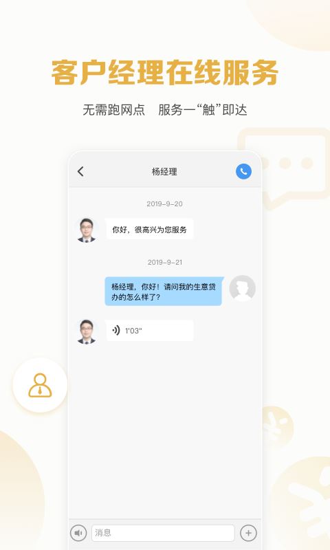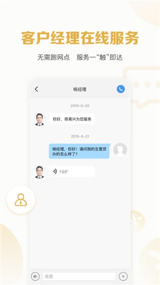 1、客户经理在线服务:无需跑网点服务一“触“即达;