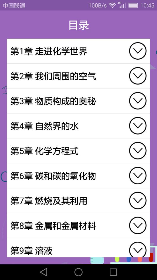 内容丰富的初中化学学习软件。初中化学课堂,包含大量的化学重要知识点,帮助中考考生备考化学科目。主要内容有:(1)初中化学:初三化学上册和初三化学下册课本所有的知识点;(2)重点化学知识:包括了初中所有的重点化学知识点,各种基本概念、常见物质的颜色和状态、物质俗名及其对应的化学式和化学名等;(3)化学分析:介绍了化学分析中的一般概念和水质分析方法、污垢分析方法,这些方法在化学实验和化学研究中非常常用并且有效;(4)元素周期表:俄罗斯化学家发现的元素周期表,对我们学习和探索化学世界有着深远的影响,学好元素周期表也是学好其它化学知识的前提;(5)趣味化学元素:讲述了一些化学元素有趣的故事,培养同学们学习化学的兴趣,同时也能帮助同学们理解化学元素的各种特性;