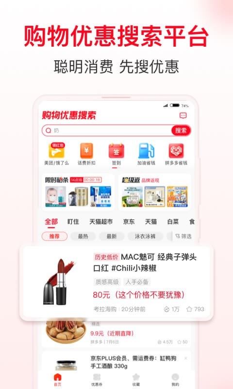 支持直接搜索淘口令,你想买的,刚好有优惠券!能省的钱我们一分也不多花。