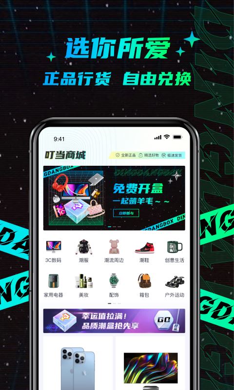 【叮当魔盒】网罗潮玩好物,随时随地在线收获潮玩乐趣,感受收获乐趣,畅选优质好物。【精品好物】精心挑选优质好物,针对广大用户群体设计了多种有趣的组合,让潮玩的乐趣不再是小众的游戏。【品类丰富】3c数码、家用电器、潮货、美妆、配饰、精致生活,只要用户想要的,叮当来发现。【*保障】*保障,无论是潮服、美妆、3C数码、手办都不用担心产品问题。