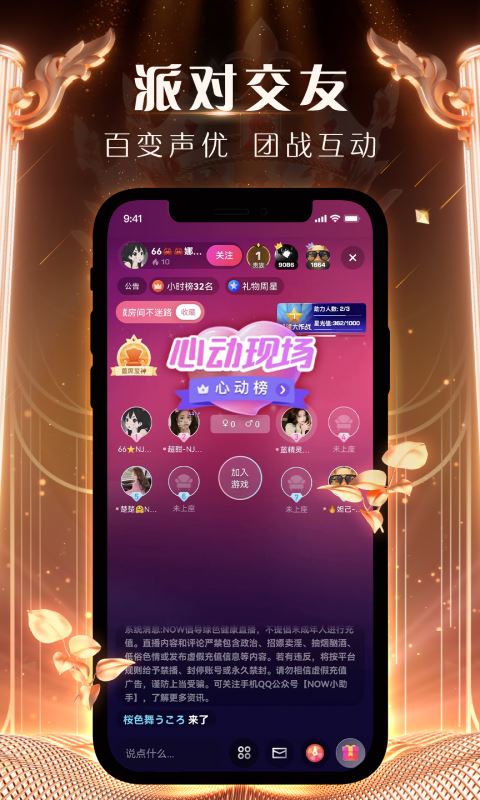 腾讯now直播助手,一般又称腾讯NOW直播。NOW直播,旗下全新软件集:直播+短视频+交友社交平台。上万个五星好评,过亿用户真实互动- NOW,让你不孤单全新直播交友玩法,高清互动短视频直播体验,各式高颜、才艺花样秀,附近直播、游戏直播、花样吃播、惊艳短视频,Now直播间给你好看!和小姐姐直播互动、视频交友、语音聊天,更有机会领取红包福利,下载下载,即刻互动!【附近交友 语音连麦】开启附近交友模式,发现身边有趣的人,缘分带你邂逅心动的ta。与主播语音连麦,亲密互动,在线1V1陪聊,情感连线feel不一样的互动。【游戏直播 大神互动】平精英穿越火线等热门游戏直播,看大神主播酷炫操作Carry全场。游戏PK排位赛,感受来自大神的精彩对决,好玩有趣的当然要同屏享受!【户外直播 别具一格】万千驴友露营直播,荒野求生,只有唱不了的高音,没有去不了的远方。现实版捕鱼达人,街头跑酷大神,户外明星主播持续招募中,边玩边赚钱,等你来报名!【趣味活动 精彩短视频】趣味PK排位赛惊艳上线,看甜美主播PK大作战,小姐姐的直播间等你守护,。精彩有料短视频都在这里,和主播一起玩转百变道具,分享就现在!Let's NOW,这是我的时刻!NOW,这是我的时刻!官方微信/微博:@NOW直播问题反馈:请加官方QQ群495836060