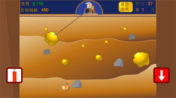 3、不变的经典玩法:校准角度,看准时机抛出抓钩,迅速拉回抓住的金子等物品。