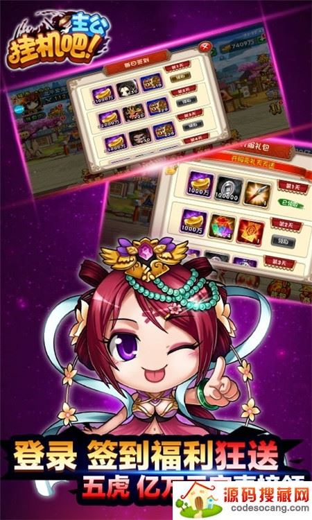 5、开服签到送三国主公、猛将:刘备、关羽、张飞、赵云、马超、曹操、孙权+3亿元宝