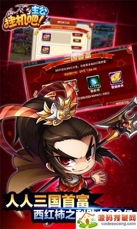 挂机吧主公西红柿首富,是款非常好玩的Q版三国战争策略游戏,游戏玩法内容丰富,并且其实挂机操作不需要花费你太多的时间,天天挂机就可以轻轻松松玩游戏。
