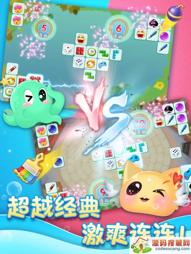 我们拥有:>刺激的迷你对战,流畅的消除体验,单局只需3-5分钟,随时随地来一把,不受限制地尽享游戏乐趣;>新颖的混战消除,六人同局进行连连看排位赛,上分升段冲王者,赢取大量赛季奖励,迈向连连王者段位巅峰;>多样化的道具卡组合,既有基础的重列与炸弹帮助消除,又有强势的冻结与蒙眼攻击对手,需要把握时机的同化与无敌,意外重重使对战更加有趣;>同步合作同屏消除,3人联机组队pk,你可以一人carry带队上分,也可以三人联手共同抗敌,不同的道具卡组合重叠,携手合作击败对手;>冒险闯关步天下,每个章节都是一场新旅程,大兴安岭的绿树青山,冰雪之城的繁华夜市,内蒙古大草原的蓬勃壮阔,可以冲击三星通关,收集经典照片,深入探索各地的别样风采;>丰富的角色时装,现有的4个角色是哥哥、姐姐、弟弟、妹妹,你可以随意切换使用拥有的角色与时装,让每一天都过的不同。>友好包容的社交空间,世界频道聊天广交好友,携家带口共建家族,与友同游更是别有一番风味。未来版本中,你还会看到:>连连看乱斗吃鸡新玩法,在场面变幻莫测的对战中,不到最后一刻绝不松懈,只有站到最后才是胜者>全新家族玩法,丰富多样可更换的家装展示,趣味接地气的家庭互动,轻松愉快的经营养成,构成游戏里的温馨之家更多新内容期待你的探索!Copyright 2019-2022 版权所有