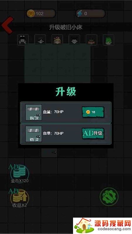 为了能够躲避猛鬼的袭击,需要快速的升级自己的门和床。