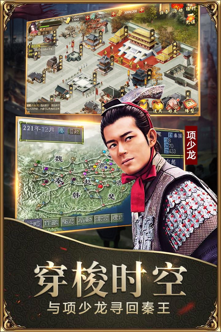 玩家扮演的正是一支反抗军的首领,从摆脱秦军的追杀,收拢残兵败将,建立自己的势力,到反攻秦国城池,光复故国古城,直到逐鹿天下,一统九州,登基为帝。