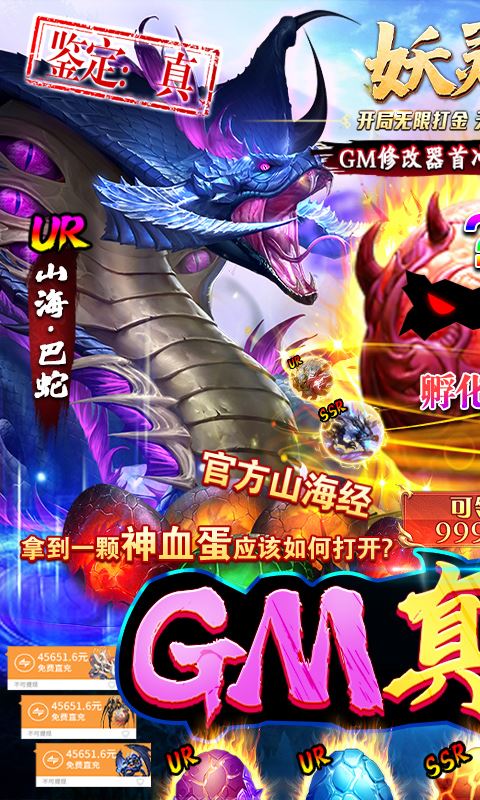 1.送GM修改器特权!!!开局送30颗无限血蛋,孵化成什么全看运气!!!。 2.GM科技全功能免费开放!!!首充,月卡,基金等一系列内购活动全部免费解锁,每天充值刷到手软。 3.推图爆神兽!!!无限制刷充,人人满V。 4.开局送千元充值!每天登陆送真充。 5.上线送V13,88888元充值,充值比例1:10000,首充多倍充值。