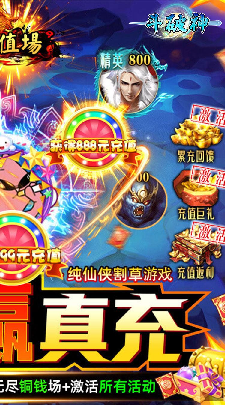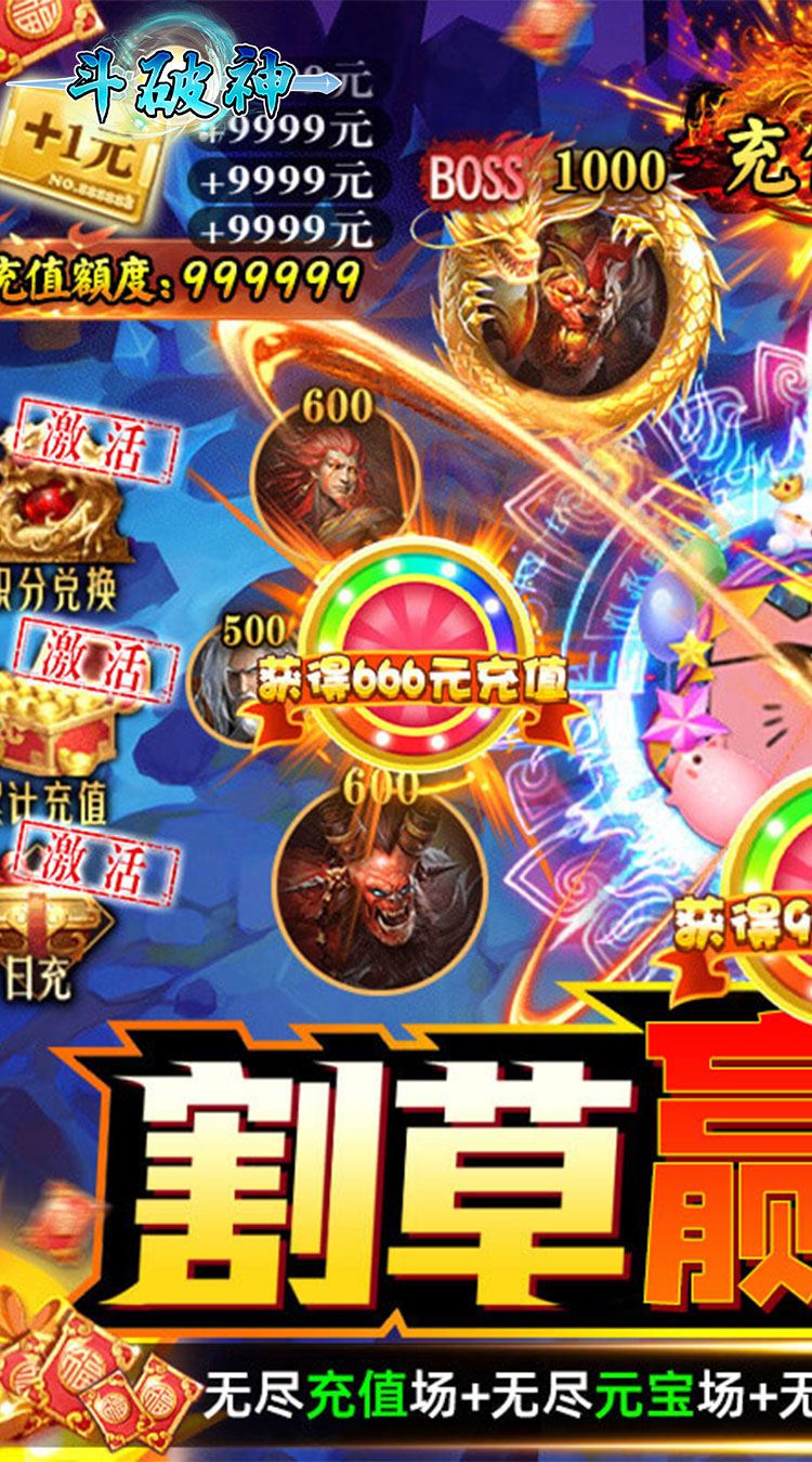 新破天一剑公益服变态版手游大全_变态版手游平台_手机游戏变态版_bt手游立即下载上线送特权V,充值比例1:10000,送888万元宝 《斗破神(割草赢真充)》是一款即时战斗类仙侠风格的游戏。各类仙器法宝多重变身,脚踩飞剑、背装绝美翅膀、怀抱绝世美人,手握无上神兵,灭天灭地灭鬼神!所有充值纯靠割草玩法产出,割草拿无限充值,无限元宝无限铜钱,并且激活大量活动!激活活动获得大量元宝还可用于直接激活全部GM商城,千万战力等你免费拿!无门槛割草简直福利到爆炸。拿着海量福利来培养你喜欢的异兽,带您体验创号即毕业的超爽体验!