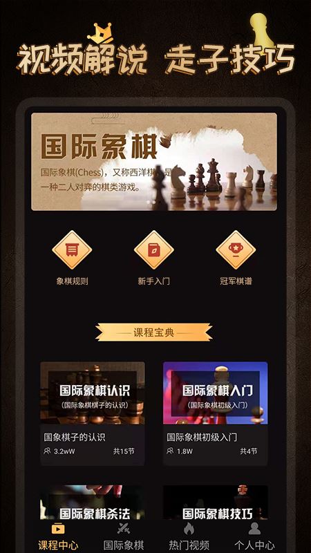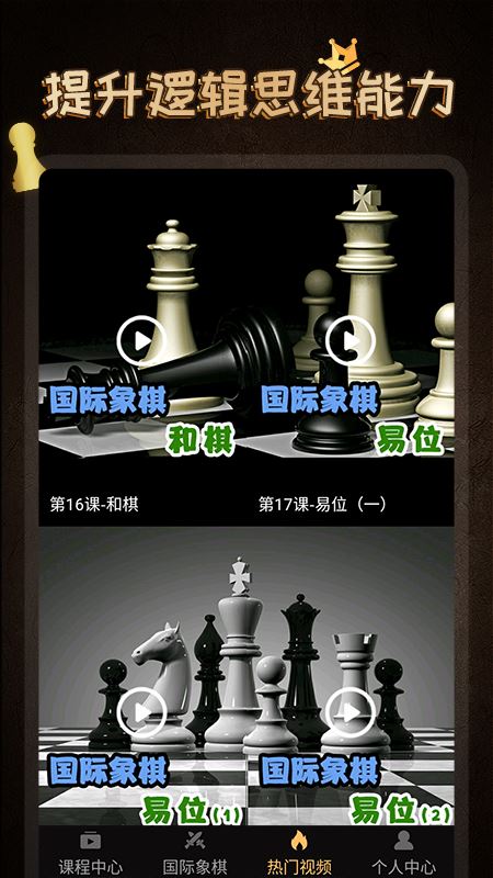 育儿指南app育儿软件有哪些?育儿软件app_手机母婴育儿软件立即下载国际象棋趣味横溢,对于开发少年儿童的智力,培养逻辑思维和分析能力,加强记忆力和想象力,有特别好的效果。中国,尤其是大城市中的家长已经意识到国际象棋对于儿童智力开发的挖掘和提高的作用,同时很多大城市也为自己的孩子出国留学掌握一技之能而专门培养国际象棋。产品功能包括:一、基础入门国际象棋成人入门指导:大讲堂共分14课逐步讲解、初级战术、攻杀技巧。国际象棋少儿入门教学:认识棋盘、认识棋子和摆放、各个棋子的走法分解。亲子互动学习玩法:各个棋子的走位摆放、基本杀法、战术集合、入门残局。根据自身水平从容易到很难循序渐进进行练习。二、经典的游戏对弈精心设计的对弈练习,让大家学会后就能上手玩。三、棋谱大全一步杀、二步杀、三步杀、残局、大赛棋谱四、走子技巧收集5000多个残局棋谱,包含马头书和波加尔(一步杀、两步杀、三步杀)等多种残局。