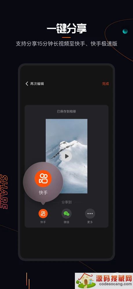 「分享」快影app可以将10分钟以内视频支持分享至快手。