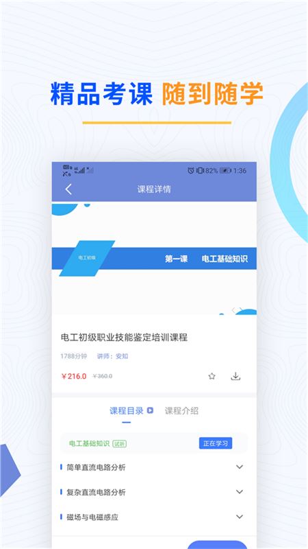 新课标初中英语助手v1.5教育app排名_教育学习软件下载_教育学习app大全立即下载电工考试题库是一款专为电工考试用户打造的手机在线学习服务应用软件,电工考试题库内有丰富的知识点,包括历年考试真题、全真模拟试卷等,帮助用户通过电工考试。电工考试题库是上学吧旗下专为全国专业的电气技术人员打造的电工考题APP,考题涵盖了初级电工、中级电工、高级电工、低压电工、电工复审等精选题库。其中低压电工和电工复审题为历年真题题库。技成旨在为广大电气学者提供便捷的考试练习平台,助力电气学者快速通过考试。【网课视频在线学习】上学吧电工题库APP中聘请了专业的讲师,精心录制了网课教学视频课程,课程内容清晰易懂,支持各位考生随时随地在线自学。【丰富的练习与做题模式】上学吧电工题库有模拟考场、历年真题练习、每日一练、快速练习、考点练习、考试押题、做题记录等多种学习与做题模式、丰富多样化的陪你一起考电工。【全面的电工考试大纲】上学吧电工题库除了有其完整的电工考试题库与丰富的练习与做题模式外,还有电工考试查询入口和电工考试重点!【便捷的计算工具】上学吧电工题库新增超便捷计算器工具,不再苦恼公式记不住,在对应电流电压等框内输入数字,一键秒出结果!可计算电压、电流、功率、电机转速、电阻、电机扭矩、流量、电阻色等。
