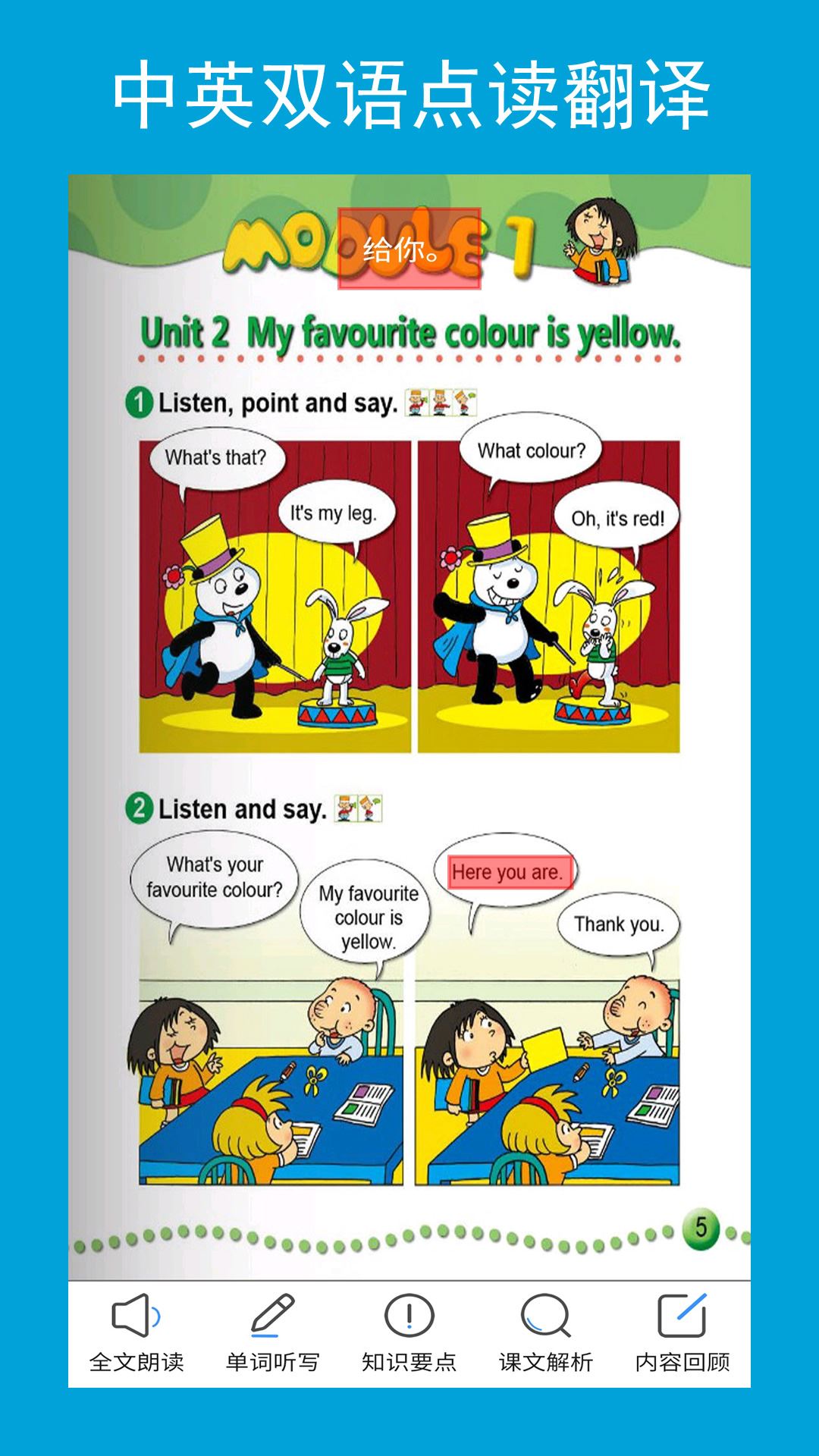 3、点一下英文朗读,再点一下中文翻译,中英文切换朗读,老师不在也能懂。