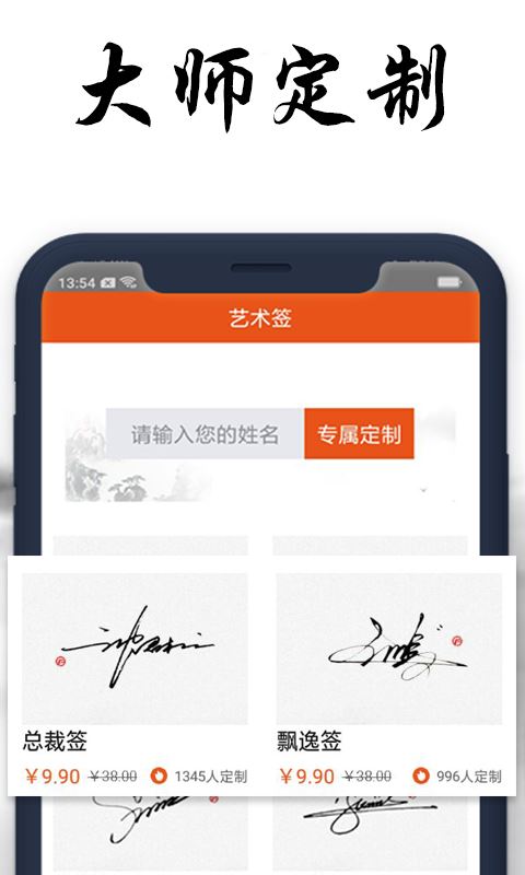 2、大师定制:在线定制您的大师签名,还有多款限时折扣套餐供您来选择;