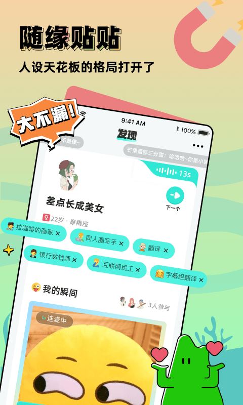 「随缘贴贴」用爱好吸引同好,表达即有回应,无需担心遇到话题终结者,在这,人人轻松自带吸引力的秘密。