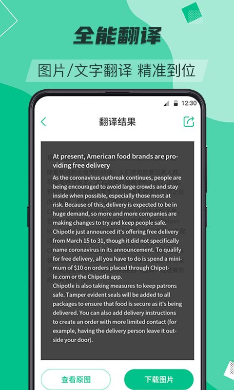 - 菜单翻译:出国旅游轻松点餐,对准菜单拍照立现翻译结果。