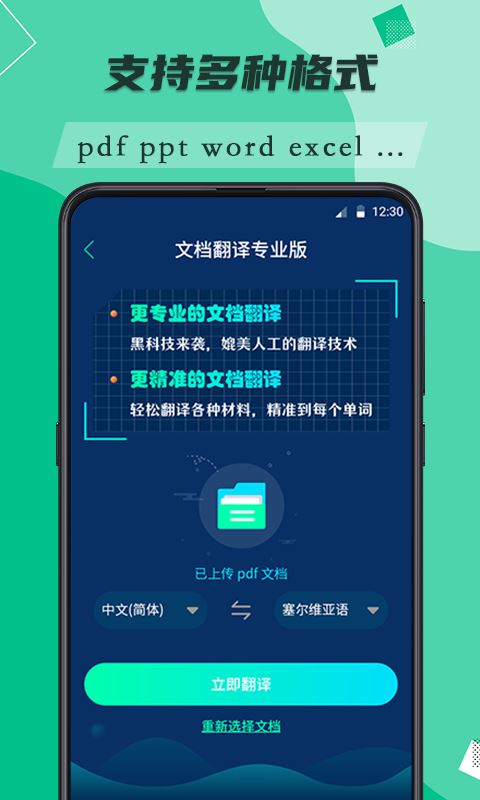 3.支持20多种文件格式随传随译,轻松翻译各种外文文献材料,中文文献转外文等,让阅读突破语言的界限,让学习效率大大提升!
