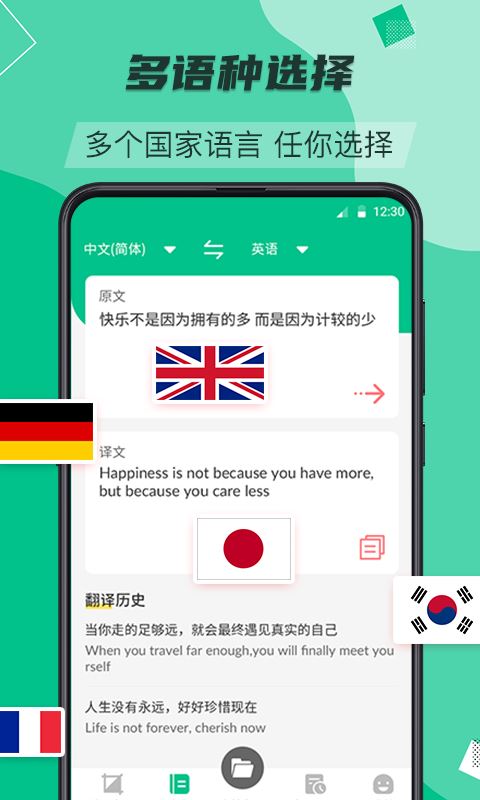 - 实用口语:覆盖日语、韩语、英语常用实用口语,并支持离线发音,让您跨国出行无忧。