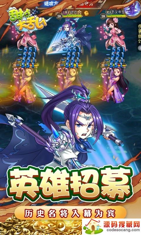 甜点大乱入GM送千抽版国战题材类手机游戏,甜点大乱入GM送千抽版采用Q版游戏风格构建热血对战世界,丰富的武将可供选择,玩家可只有组合搭配武将,运用自身策略进行对战,丰富的战役等你来参与,更多精彩,不容错过!