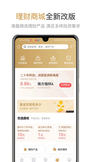 兴业证券优理宝APP是由兴业证券股份有限公司推出的一款网上财富帐户管理系统,软件功能性多样,在兴业证券优理宝首页中有“学习”授业解惑,有明星投顾、组合观点帮你开启投资新视界,除此之外,理财商城全新改版,含有海量精选理财产品满足用户的多样投资需求,更有尊享会员权益客户体验再升级。除此之外,在兴业证券优理宝手机版中通过账户分析功能,可以方便的了解自己帐户内的资产、盈亏情况等;通过理财规划可以方便的了解到自己的客观风险承受能力,找到适合自己的资产配置情况等。感兴趣的用户可以下载体验一下试试看哦!