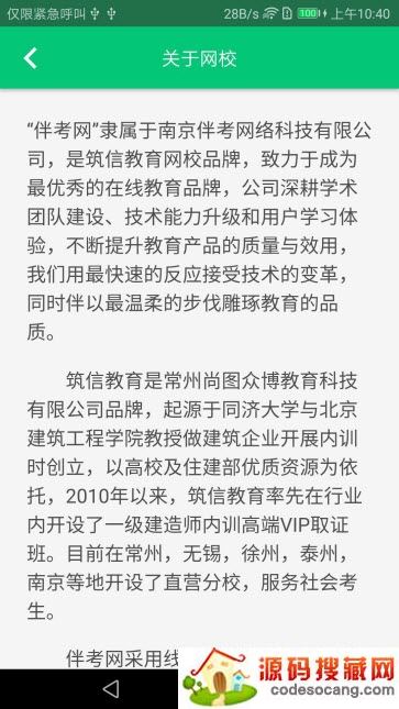 “伴考网”APP是南京伴考网络科技有限公司倾力打造的一款移动智能学习平台,涵盖建工类、医药类、考研类共三大类目几十余项课程。利用多种教学方法与工具全面解决在职人群的学习困难,让学习像呼吸一样简单!