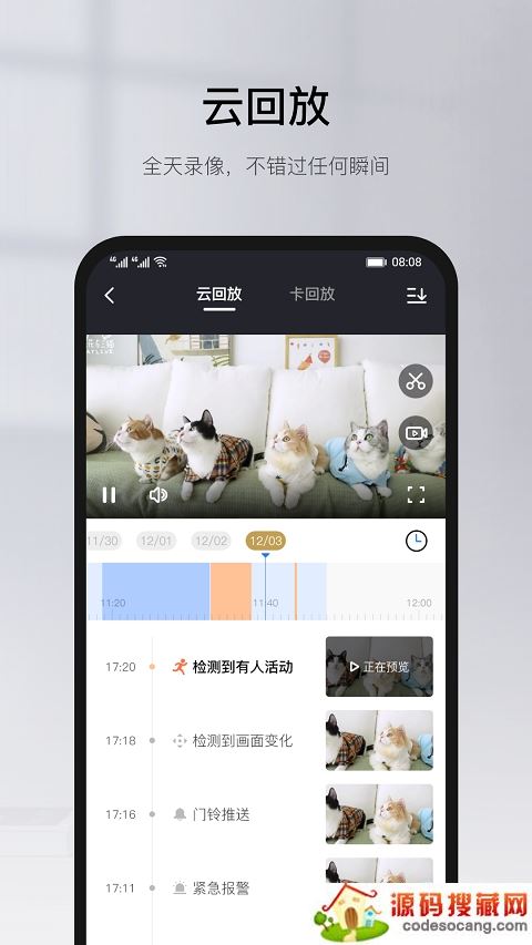 【历史录像随时查看】支持TF卡或云端录像存储,随时随地记录关键镜头,收藏精彩瞬间。