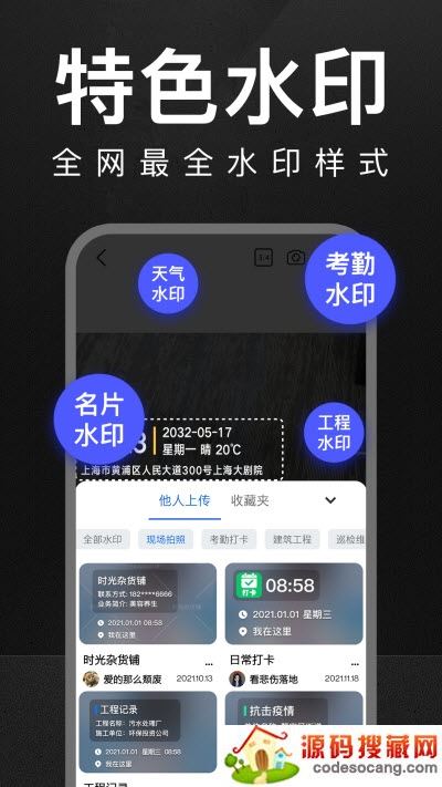 适于项目巡检、勘察取证、防控消杀、执勤执法、考勤打卡、外勤拍照、工程管理、微商电商等多场景工作拍照、打卡、记录所需,更有防疫消毒水印,记录健康。另持续推出创意水印,支持乐享生活的人们旅游打卡、探店打卡、健身打卡!