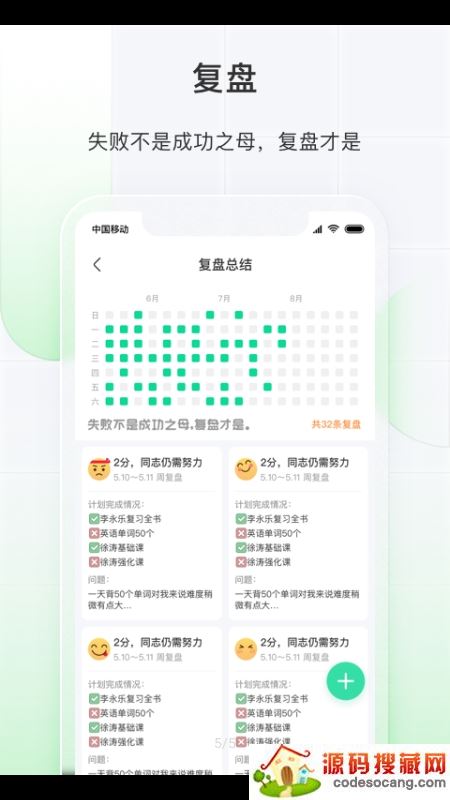 7.复盘你的每一天——“失败不是成功之母,复盘才是”。全新复盘功能,帮助你梳理自己的计划完成情况、个人能力预估、问题分析与每日总结。