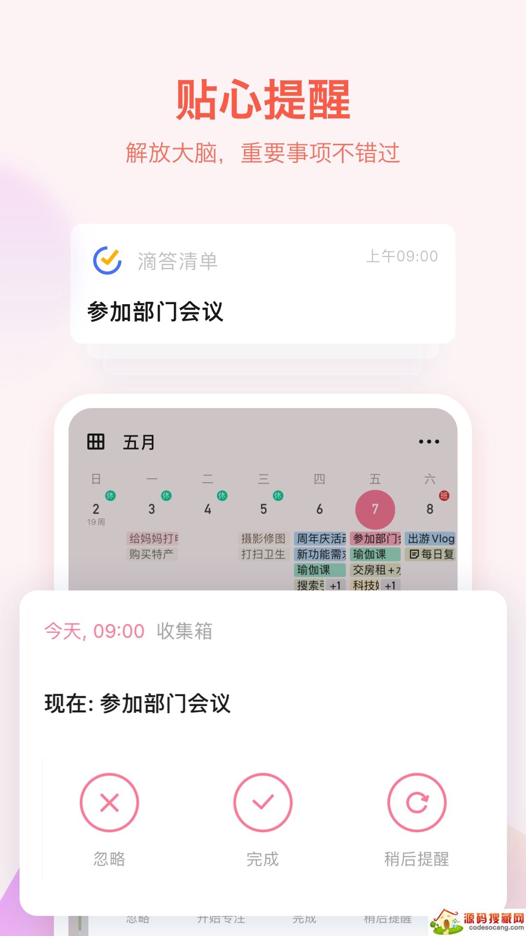 - 全能提醒:设置「多闹钟」、「重复」等多种自定义提醒方式,不会错过任何重要事情。