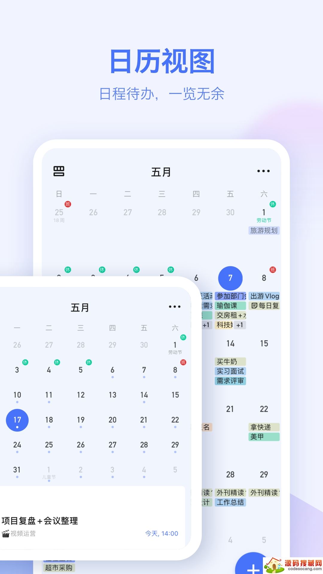 - 日历视图:在直观的日历视图中查看日程计划。轻松拖动任务即可实现管理。支持订阅Outlook, 谷歌等第三方日历。
