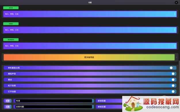 随机点名是一款快速帮助教师请孩子们回答课堂问题的应用。普通用户也可以玩出很多花样。【功能】可以随机点名可以随机决定吃什么、去哪玩、谁做家务等等随机项目可以自己定义可以随机让孩子们抽奖公开课神器【使用说明】只要把你想随机的项目以中文逗号分隔填在相应的组即可使用本应用支持语音播报如果将应用投屏到一体机效果更赞手机和平板端都可以使用采用最新的框架编写支持最新的操作系统本软件永久无广告。【反馈】欢迎通过以下方式联系我:微信公众号:var_name_wangxuncai邮箱:wangxuncai@sina.cn抖音:wangxuncai微博:wang_xuncaiCopyright 2019-2022 版权所有