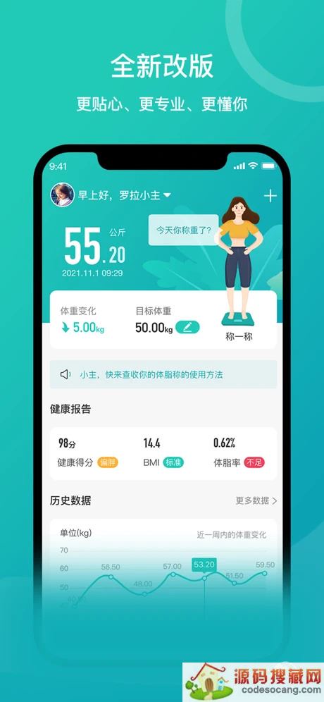 1.采用BIA技术测量身体阻抗,计算出总共20项身体数据,让你更了解自己。2.全面分析健康数据轻轻APP跟据各项身体数据作出深入的分析,并提供详细健康报告及专业意见,帮助您达到您的目标体重。3.支持多个用户使用,关注您的家人健康可添加多位家庭成员。支持特定型号的智能秤之脱机测量功能,包括自动识别用户及脱机数据上传等功能。4.分享减肥历程轻轻APP提供了多个平台数据分享,和好朋友一起分享你的减肥历程。5.图表简报记录您每一天的健康数据您每天的数据可以通过不同的图表显示出来,方便您了解身体各项数据的变化趋势。Copyright 2019-2022 版权所有