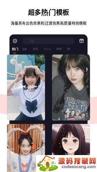 【卡点模板】:涵盖热门音乐+潮流炫酷转场,自动卡点,一键生成;