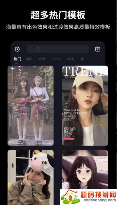 涵盖热门音乐+潮流炫酷转场,模板日更,当下流行轻松把握