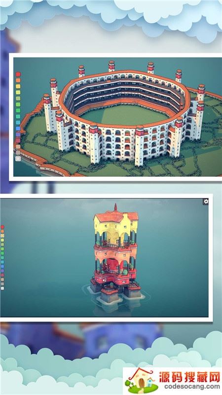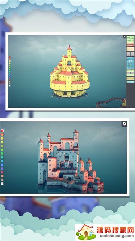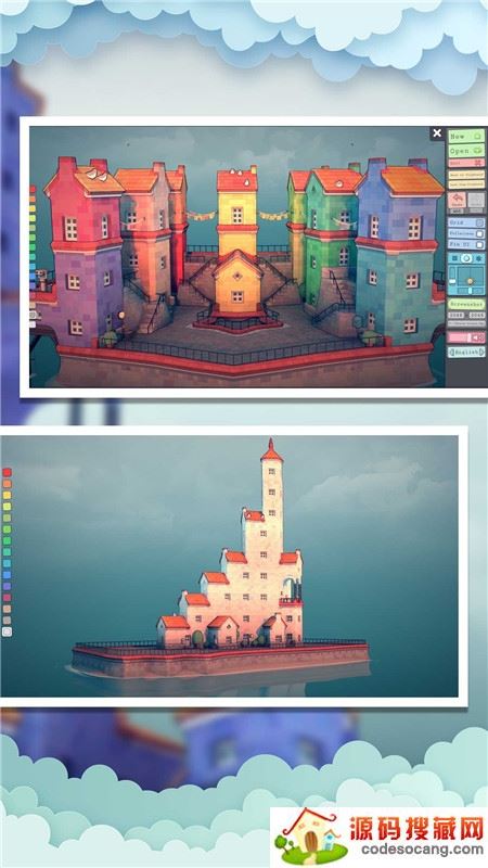 根据不同的配置自动地将这些色块变成可爱的小房子、拱门、楼梯、桥梁以及郁郁葱葱的后院。