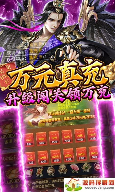 ★后缀说明:游戏内点击“万元红包”,升级免费领取万元真充卡,除此之外登录还能领万次福利连抽!
