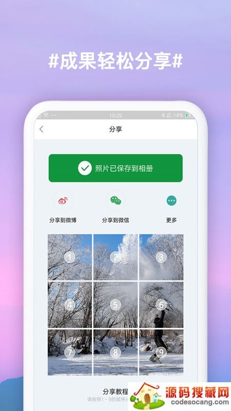 无需复杂操作,九宫处理app支持将图片完整分享第三方平台。
