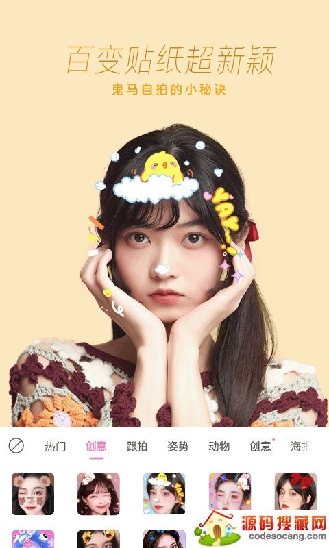 一甜相机添加了丰富的面部动画和面部转换功能,以及有趣的边框背景效果,使您和您的朋友可以在一甜相机中玩!