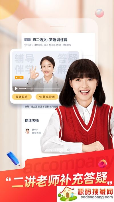 采用“授课+辅导”的在线直播双师模式,主讲老师直播授课,讲解核心知识点,二讲老师辅导伴学,为孩子答疑解惑。