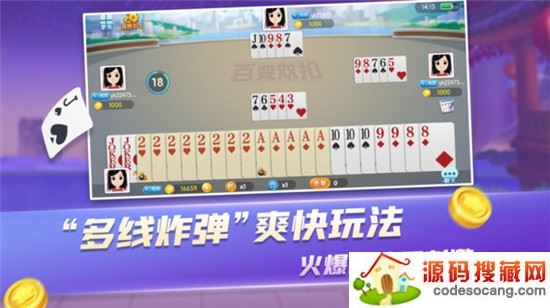 游戏玩法多样,百变千变火拼全都有 单顺、双顺、七线炸弹、八线炸弹、天王炸,正宗玩法畅爽体验 智能选牌,一指选牌,简单便捷,玩双扣就是这么轻松 好友同玩,永久免费,呼朋唤友一起玩。