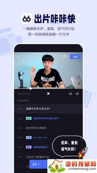 【快速剪辑】智能识别视频中无声、停顿、重复句及语气词等无效片段,勾选后一键删除,视频粗剪从未如此简单