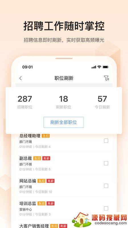 【职位刷新】即时刷新急招职位,实时提升职位竞争力;