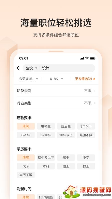 【职位搜索】多条件组合搜索,海量职位任君驰聘,不用担心错过机会,最新职位、理想职位,轻松应聘。