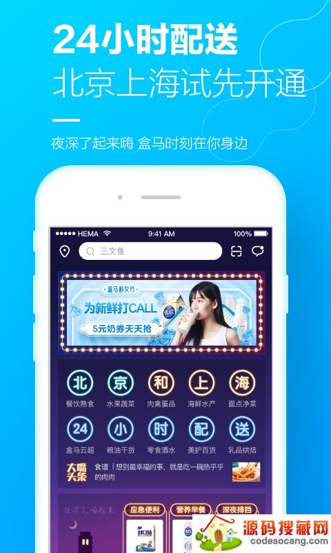 盒马自营的生鲜与餐饮产品,满足用户随时随地“吃”的需求,既有美味熟食,又有生鲜直采食材。