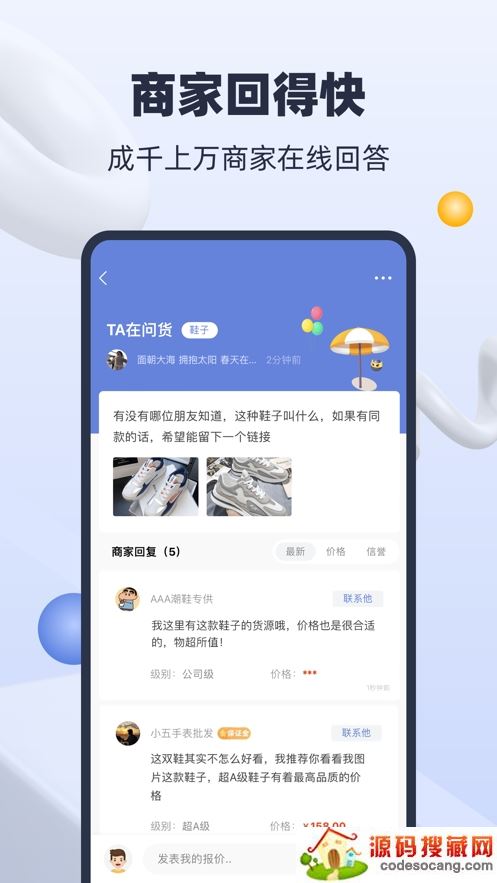3,大家可以将自己的找货需求进行线上发布,商家能够及时的回复。