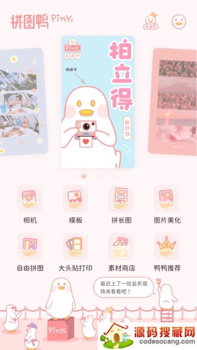 智能证件照app2022最新版 v4.8.5安卓版安卓图片拍照软件_安卓图片处理软件_安卓拍照软件立即下载拼图鸭相机app,拼图鸭相机是一款相机拼图修图软件,专为软系萌妹服务,粉色系小可爱风格,让您轻松打扮并制作属于你的个性相册。拼图鸭相机app内置了专业的图片拼接工具,多种拼接方式任您选择,可以免费使用内置了上百款精选主题,后续还会不断有新款式上架哦~本次带来拼图鸭相机app安卓版下载,喜欢粉色系照片编辑工具的朋友们快来下载体验吧!