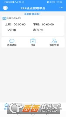 (2)日常打卡可以在这上面快速的完成,这里会完整的记录员工的考勤,请假也可以在这上面进行申请。