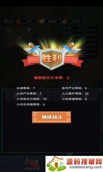 9.小兵攻击力和小兵血量都升到3级,为了刷新新兵,找家兵力弱的进攻他主城。
