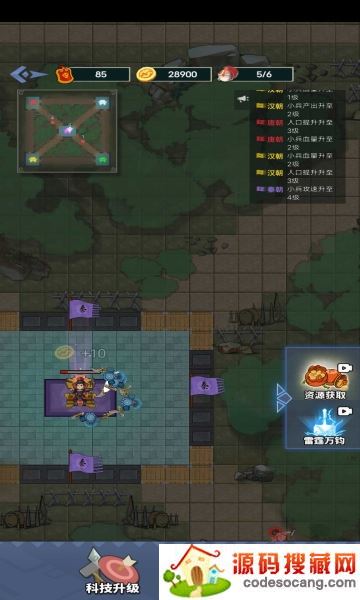 3.开局先存500金币,收集资源升级资源里的强化人口提升,前期6个兵,可以做到人数压制。